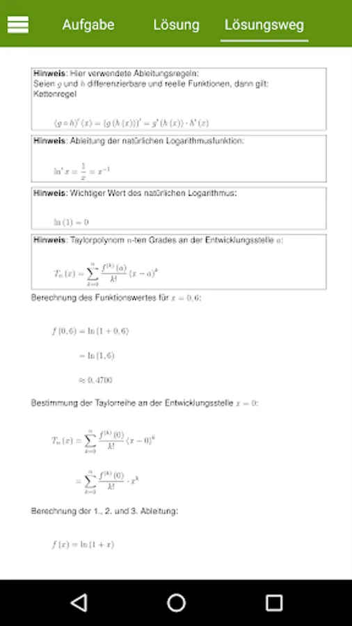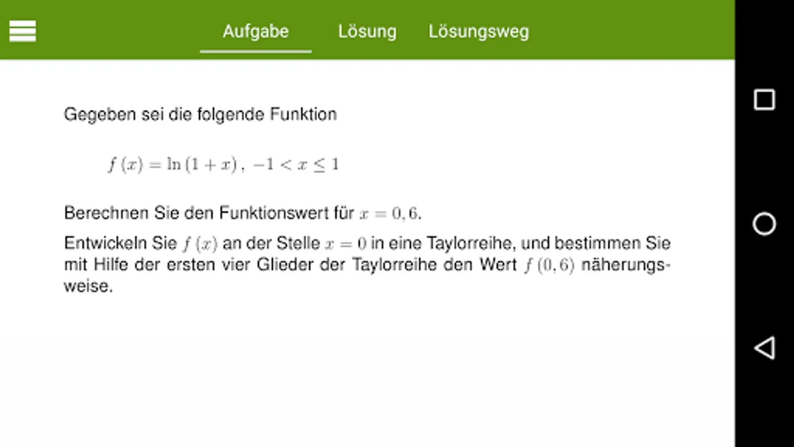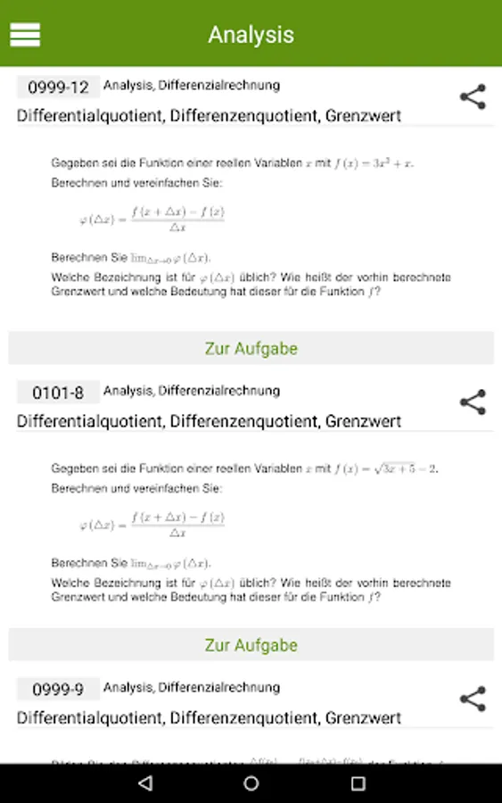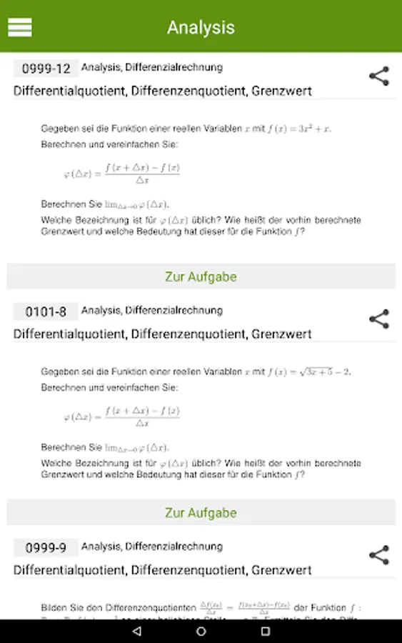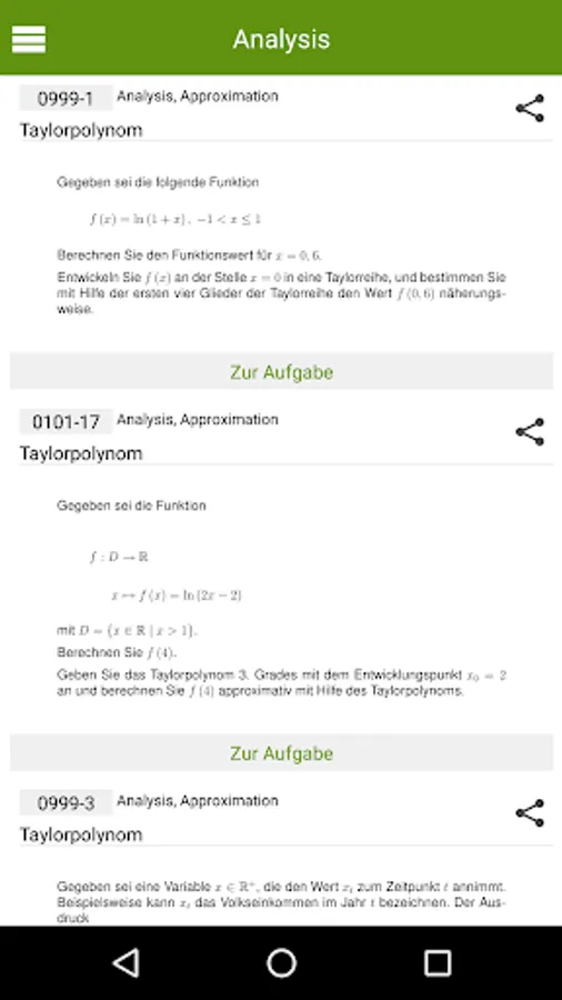 The app provides you mathods over 1,000 klausur relevant mathematics and statistics exercises for successful completion of your mathematics and statistics exams available. For all exercises you will get in addition to the task text approved solutions and detailed solutions.