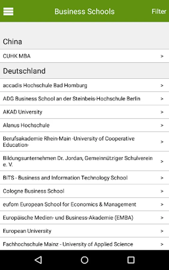 About that business school directory you can quickly and easily find the right place for you study. Here you can find a variety of business schools from many countries that offer you a Bachelor, Master, PHD or executive program.