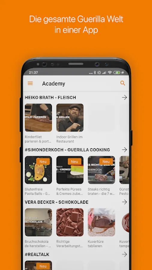 Our goal is to make cooking sexy again. Become part of the #GUERILLAFAM and learn everything about cooking in our free video academy. As a member, take advantage of attractive benefits that are only available to guerrillas and take part in workshops, events and video streams.
