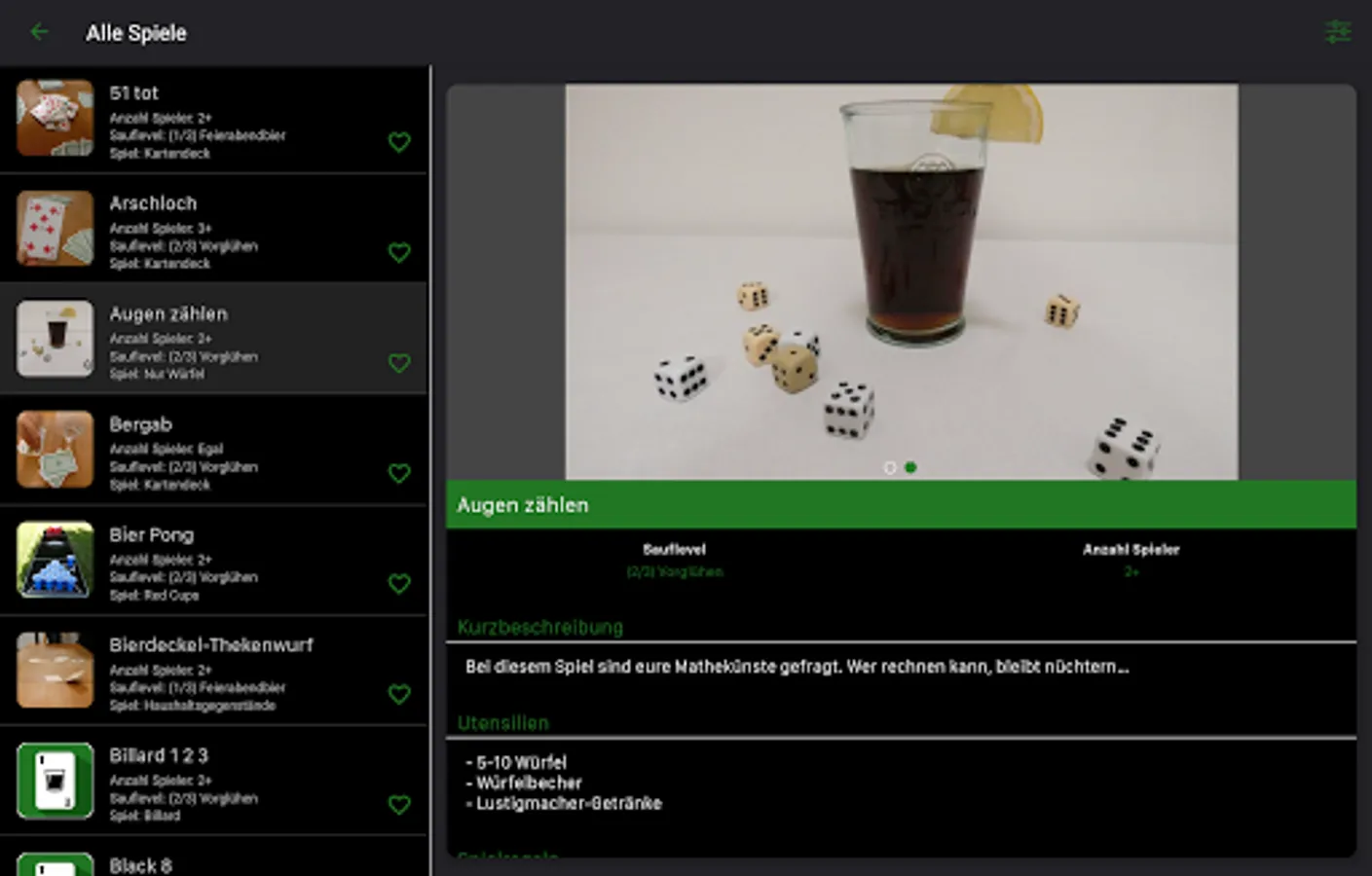 Pick out a game, adjust your drinking level for the evening and find fun drinking rules that make even boring card games a success. No game at home? No problem either. Under "playless games" you mostly only need pen and paper or imagination, skill and thirst. If, thanks to our app, you no longer have to worry about drinking games for game night, please buy the alcohol! Bottom up!