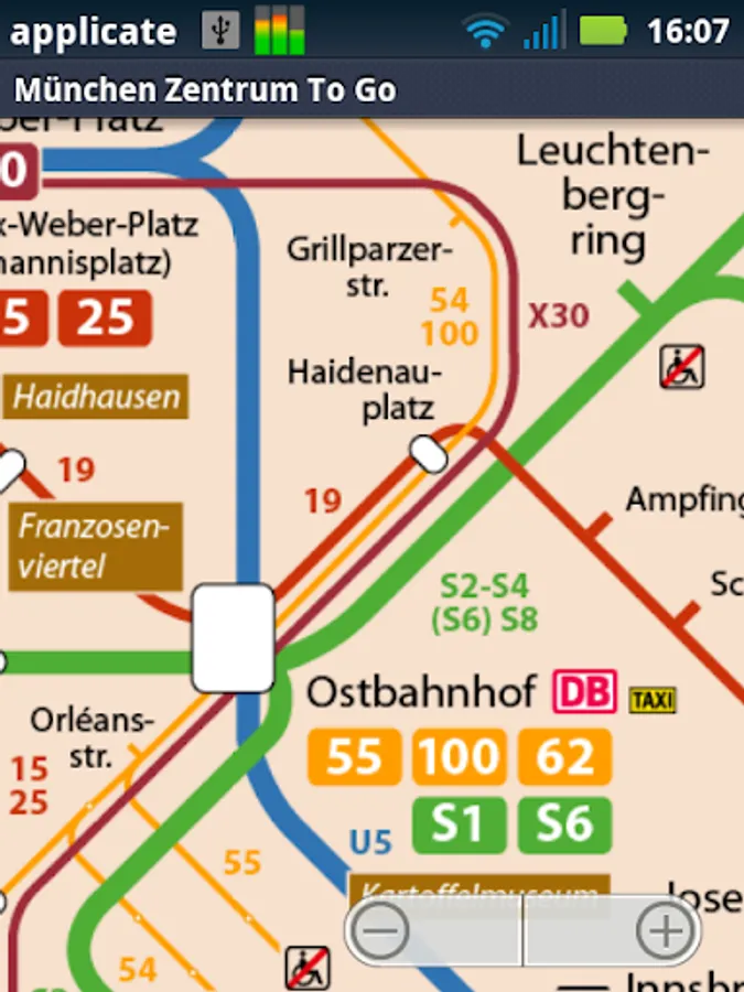 In addition, can be retrieved with an attainable From-left-to-right wipe menu, various maps of bus, tram and S-Bahn.