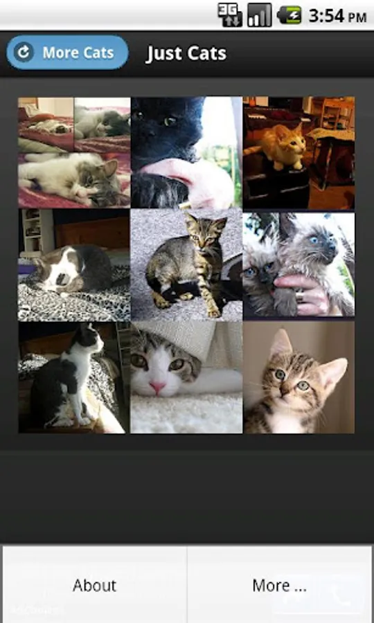This app shows changing cat related images from the Flickr network (http://www.flickr.com).