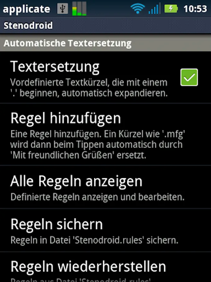 Documentation http://www.applicate.de/android-apps/stenodroid