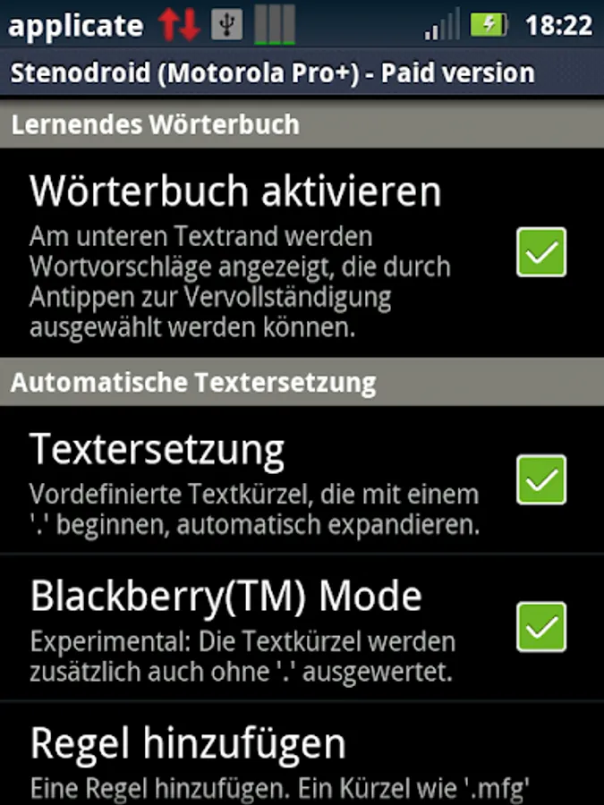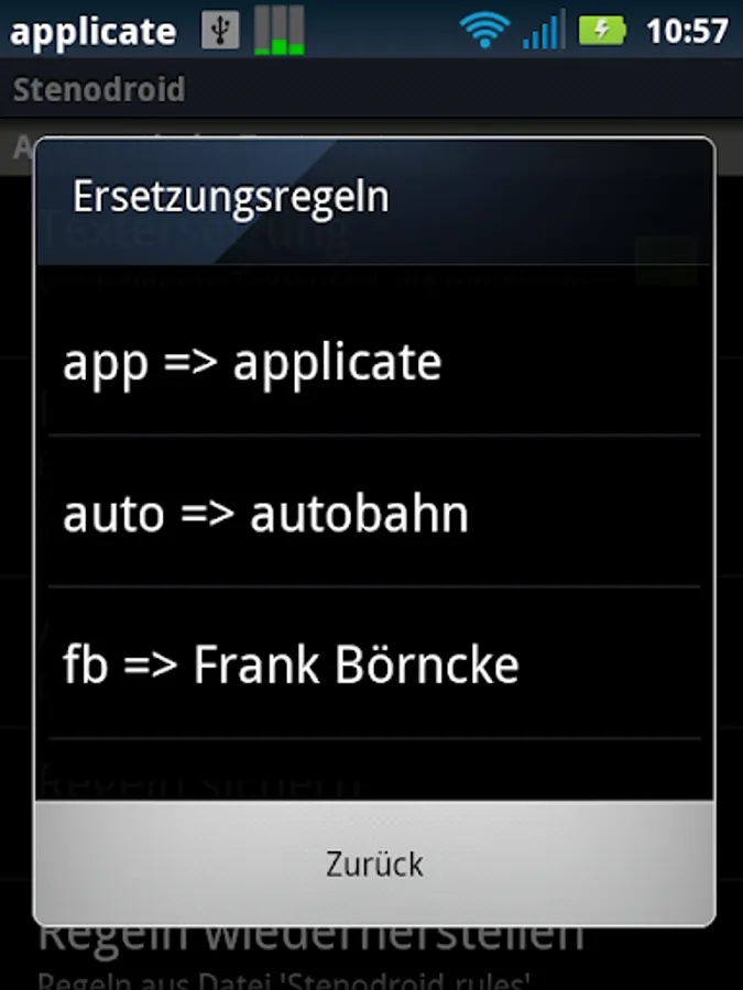 c. From a set of rules backups can be created in an XML file. These XML files can also be edited separately with an editor and can then be played back to Stenodroid.