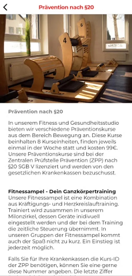 You can call up the current course schedule at any time via the app, so you are always informed when the courses start. You will never miss your favorite class again.