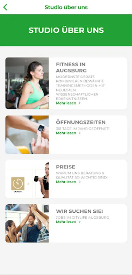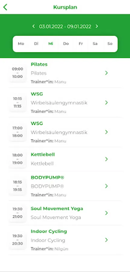 You can call up the current course schedule at any time via the app, so you are always informed when the courses start. You will never miss your favorite class again.