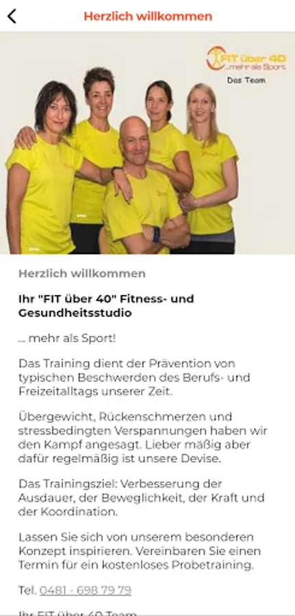 With the FIT over 40 Heide app, you always have your fitness club with you. It offers you all the important information about your Club FIT over 40 in Heide at any time: news & current affairs, promotions, offers, course schedule with course description and much more.