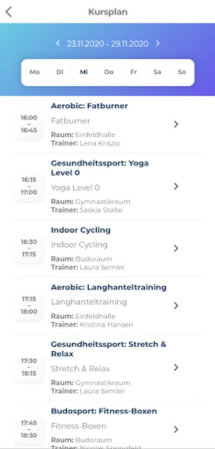 Direct and current access to the course plan Everywhere: For each course you can details such as time, course description, space and features such as see the difficulty.