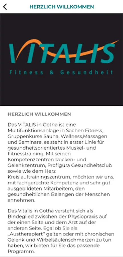 By Vitalis app you have your health club always. It provides you at any time all the important information about your club Vitalis in Gotha: Latest News, promotions, offers, price plan with course description and much more.