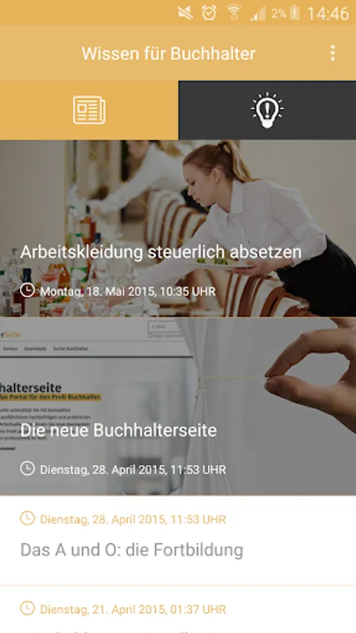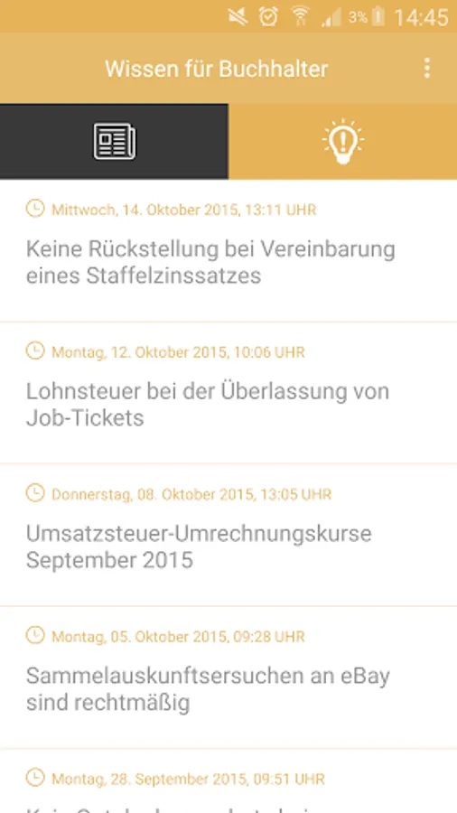 With the app, the accountant side you are always well informed about your chosen career field. Whether detailed contributions on self-employment, marketing or the everyday work of accountants - the App of accountants page provides you with the issues that are important to you as a professional accountant. You will receive current information about VAT rates which would be new judgments or BMF messages.