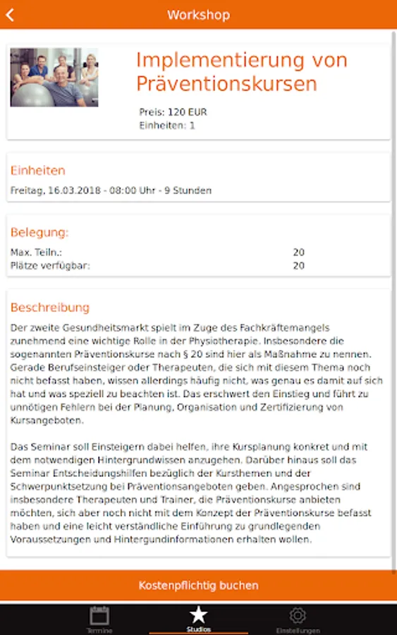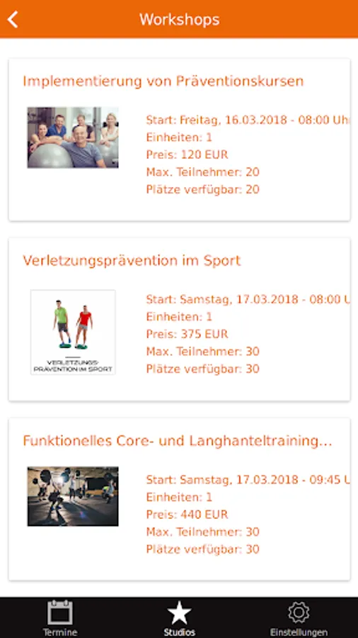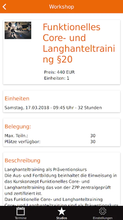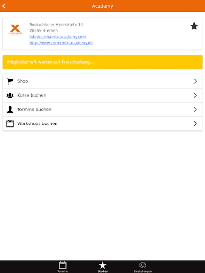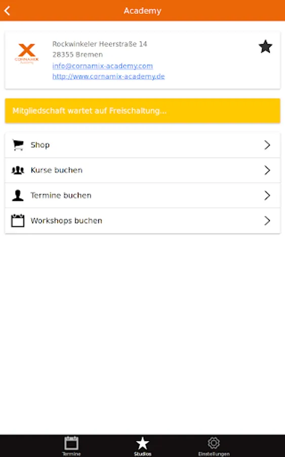 The app shows you the details for Athletes box and Cornamix Academy. As a confirmed member of the Athletes box you can you directly and easily sign up for the courses.