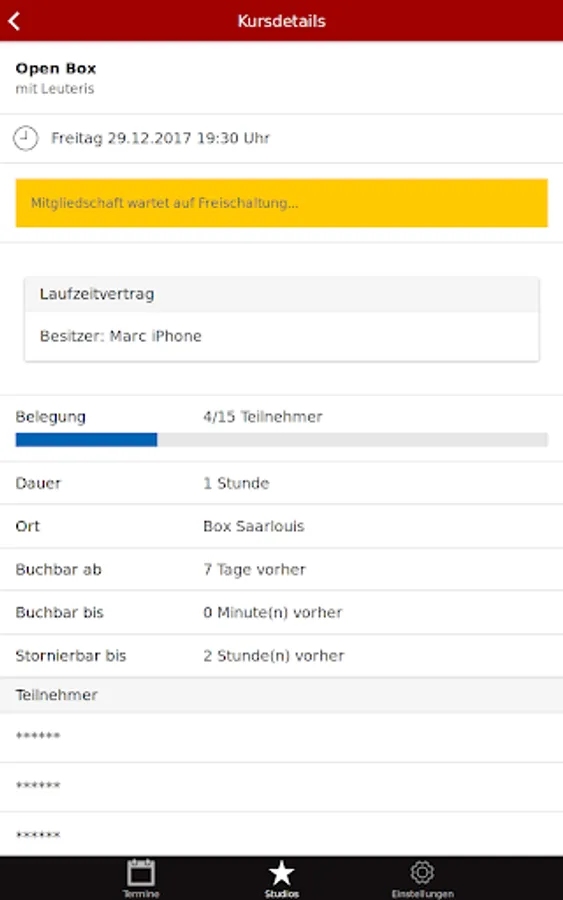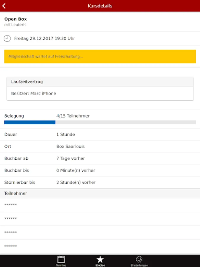 The app will show you the details about CrossFit Saarlouis and you can see all courses. As a confirmed member you can sign directly and easily sign up for the courses.