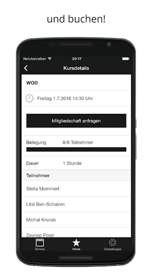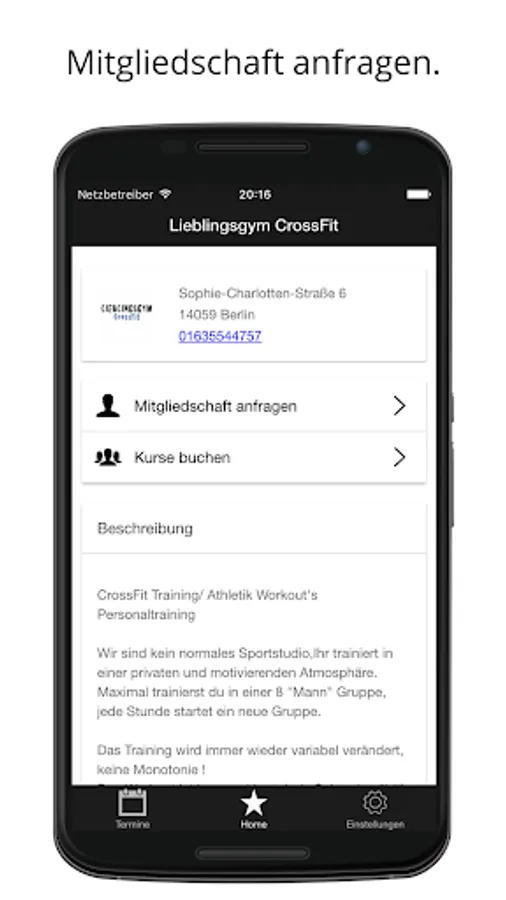 The app shows you the current course plan, the details of the Wods and your membership. As verified user you can introduce yourself directly and easily sign up for the courses. You will receive information about the individual courses and have your appointments at any time in view.