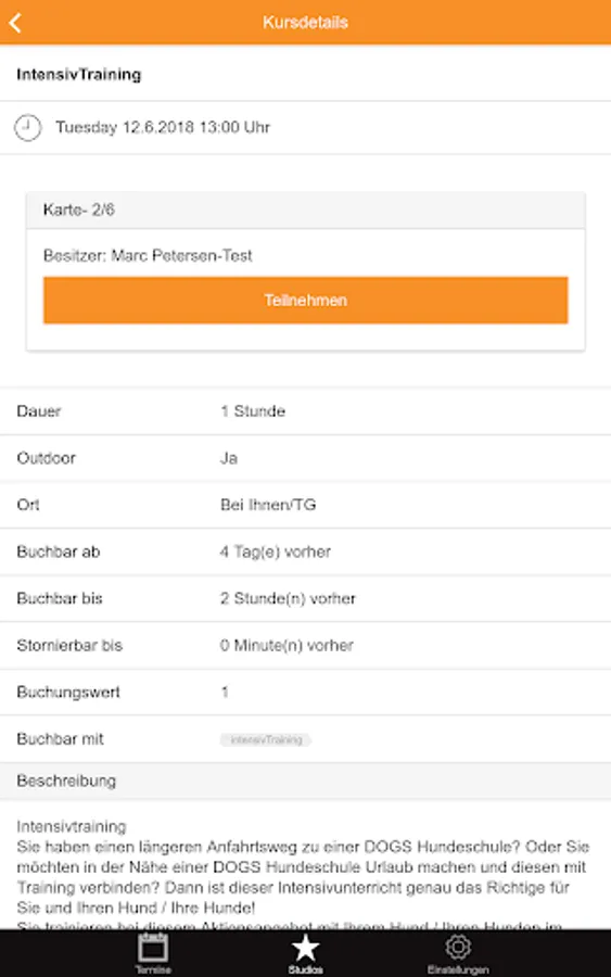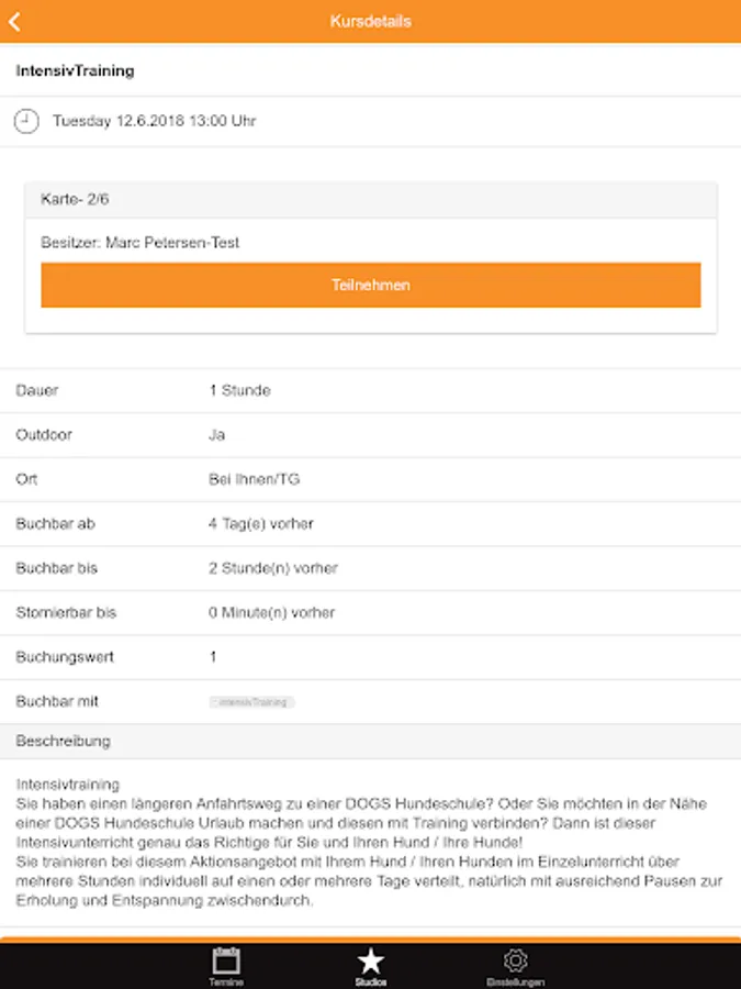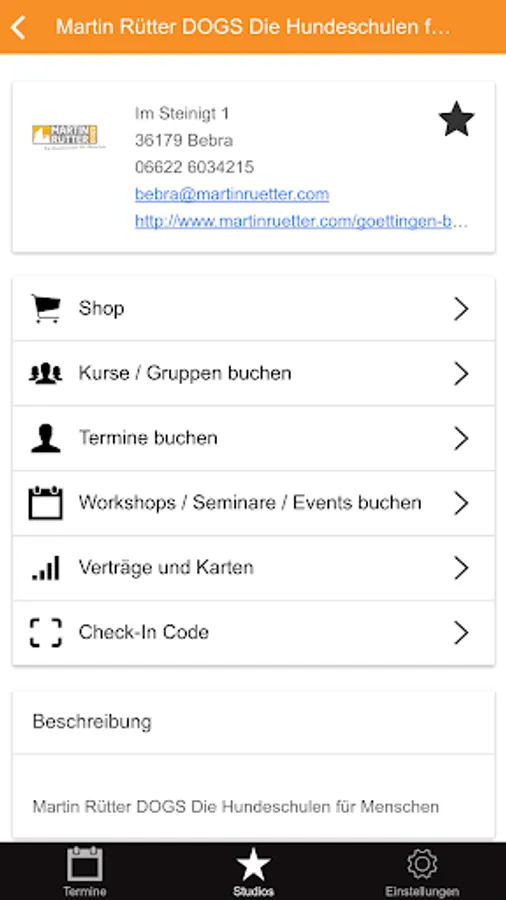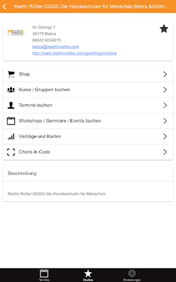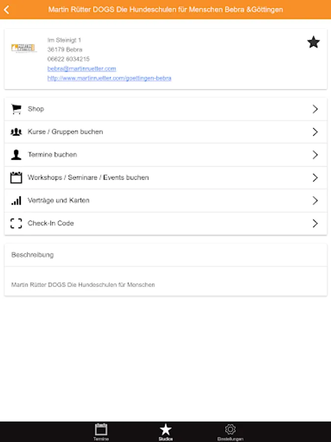 The app will show you the details of Martin Rütter DOGS & Bebra Göttingen and you can see all courses. As a confirmed member you can sign directly and easily sign up for the courses.