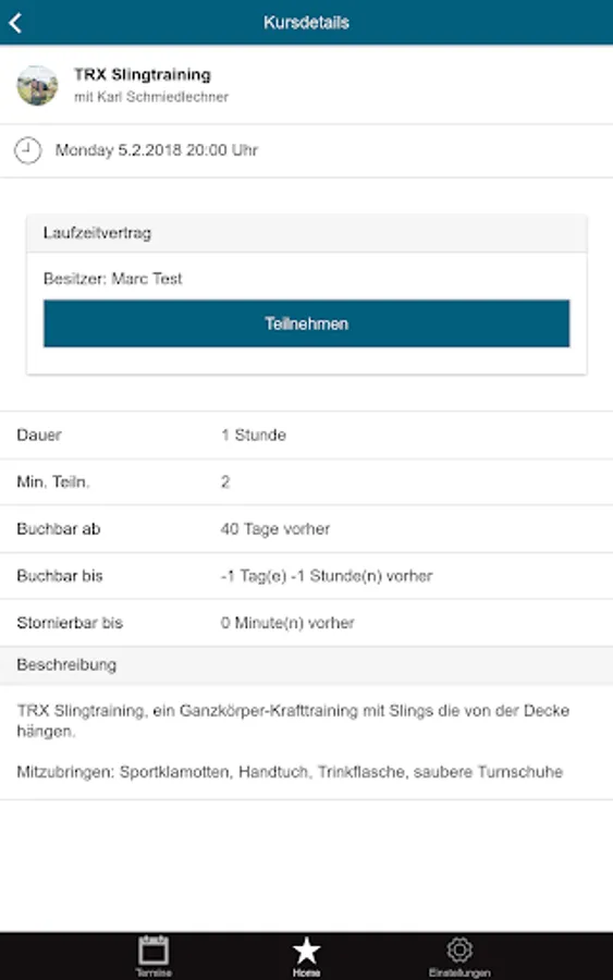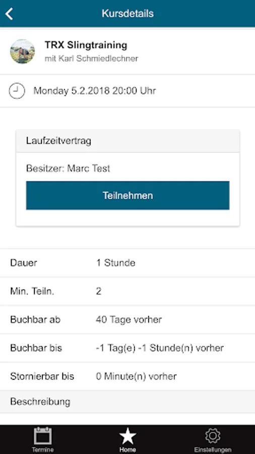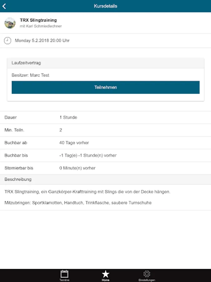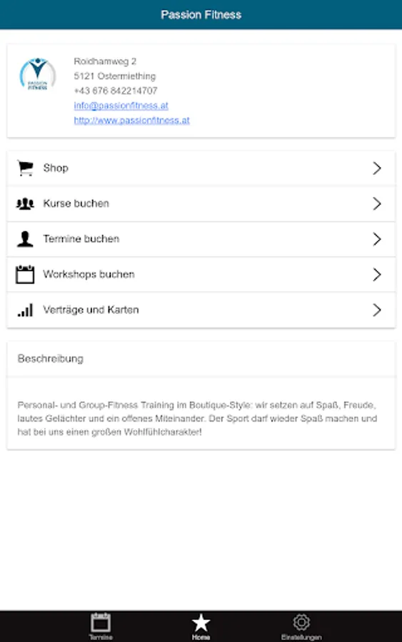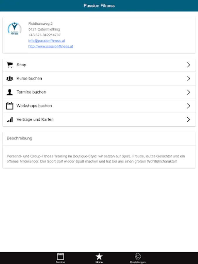 The app will show you the details of Passion fitness and you can view all the courses and available dates. As a confirmed member you can sign directly and easily sign up for the courses and book your appointments.