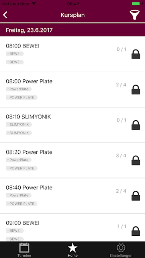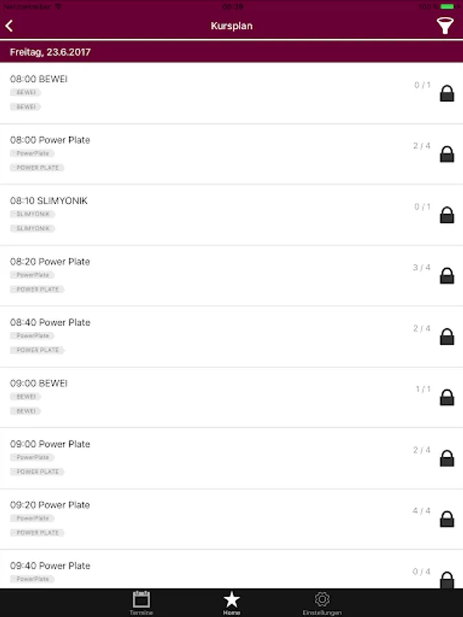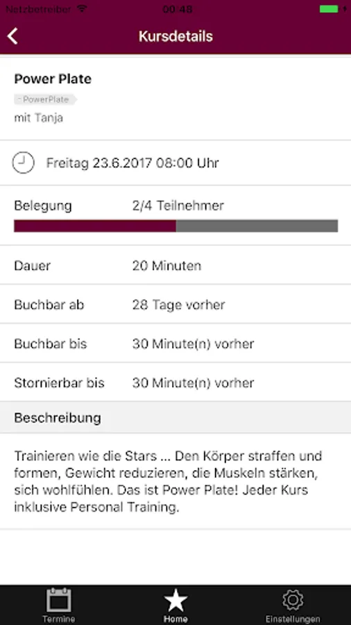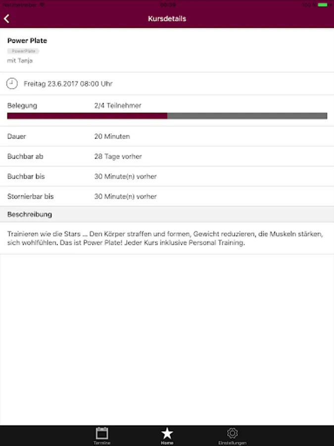 The app will show you the details of Power Place and you can see all courses. As a confirmed member you can sign directly and easily sign up for the courses.