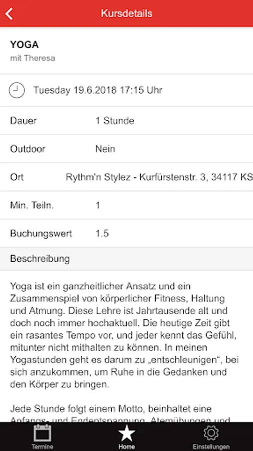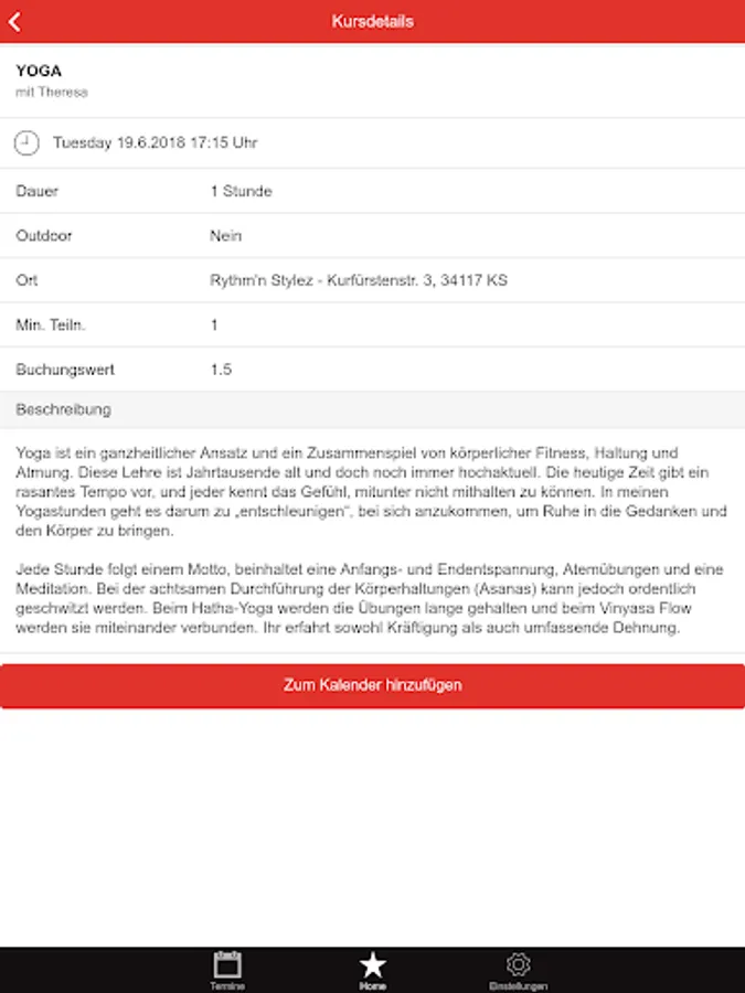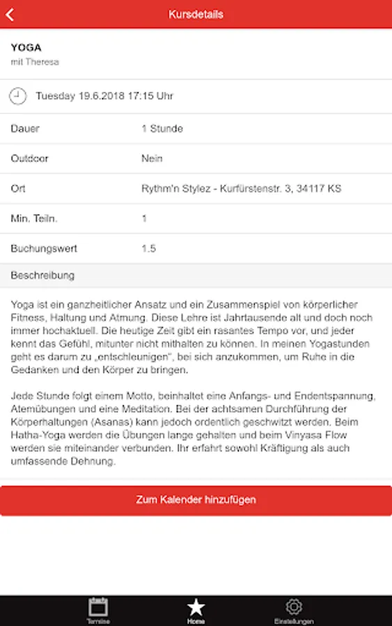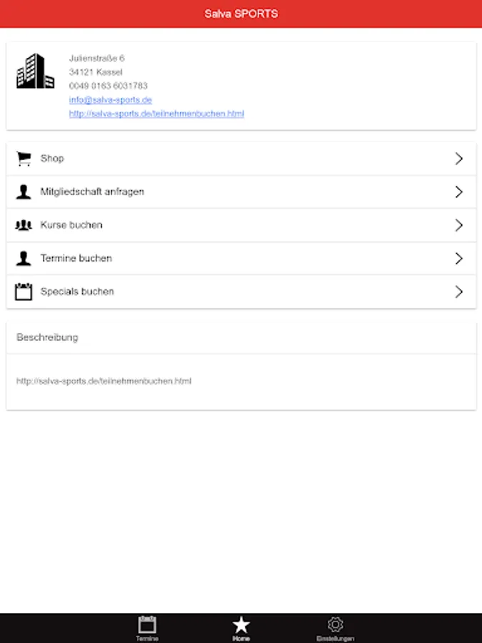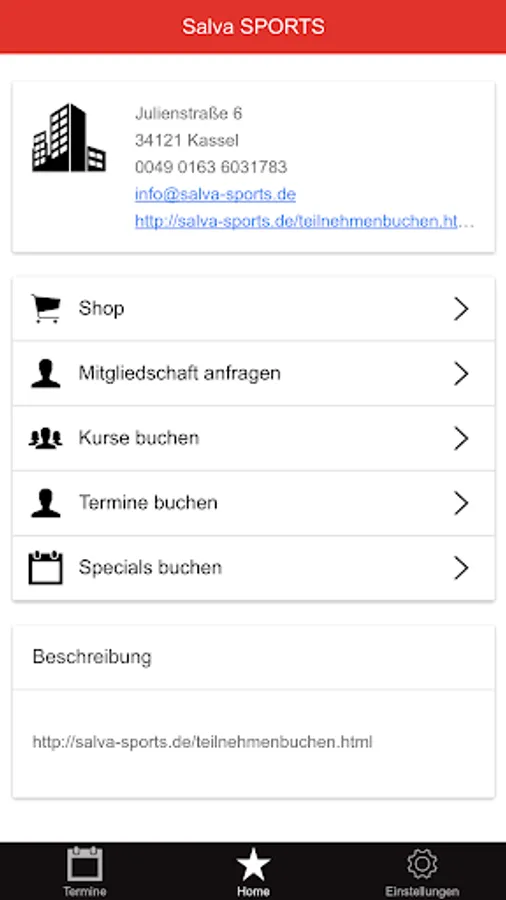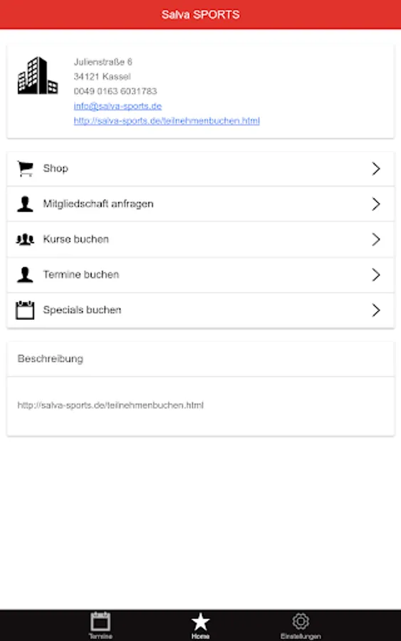 The app will show you the details of Salvatore SPORTS and you can see all courses. As a confirmed member you can sign directly and easily sign up for the courses.