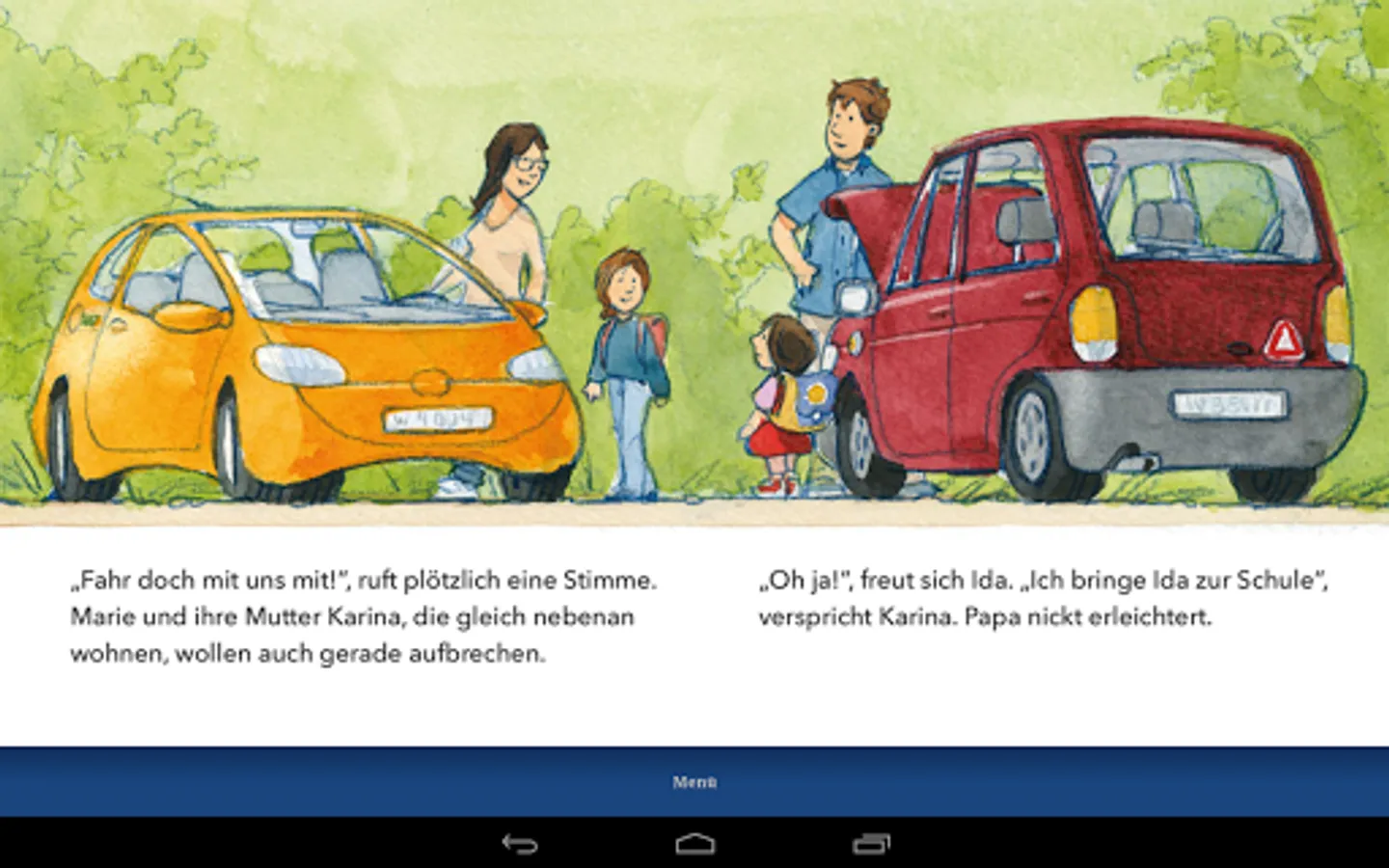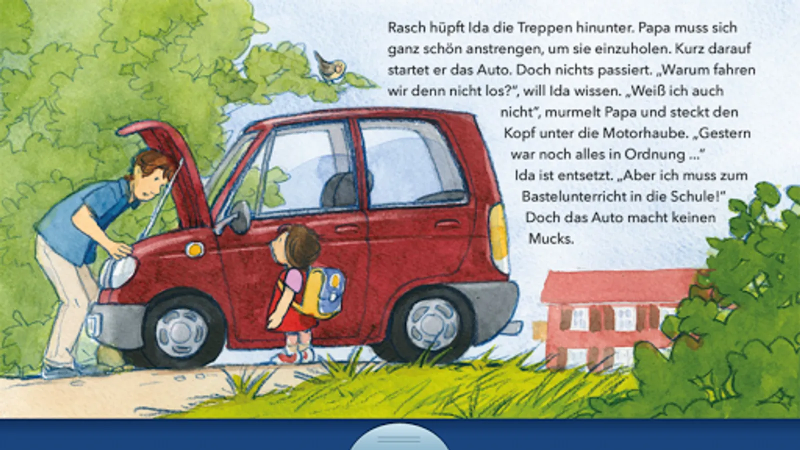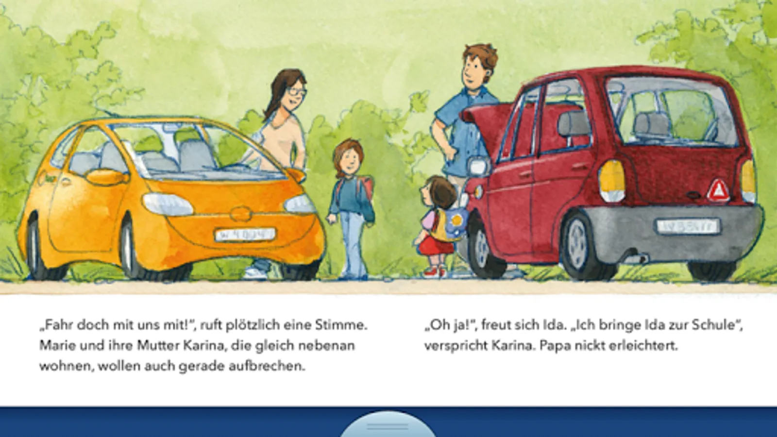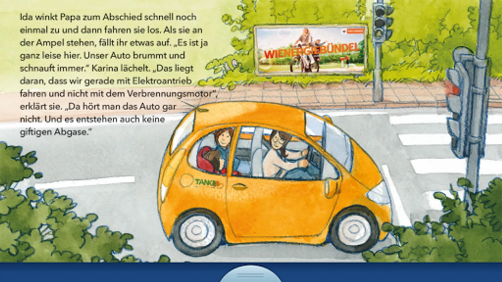 Ida travels with her neighbor Karina in electric car because the car of Ida's dad does not start. On the way to school Karina tells her how an electric car really works and what exactly are the benefits. In the handicraft lesson at school Ida suggests equal right to tinker with things electrical drive, eg a monorail and an electrically powered boat. At the school festival presents Ida then their favorite vehicle in front: the flying ice cream truck.