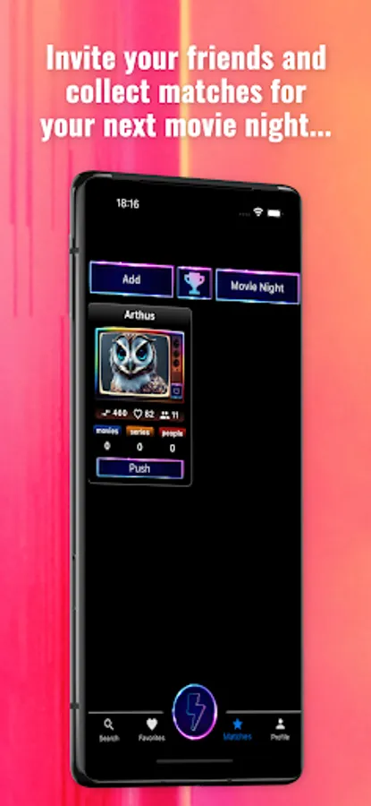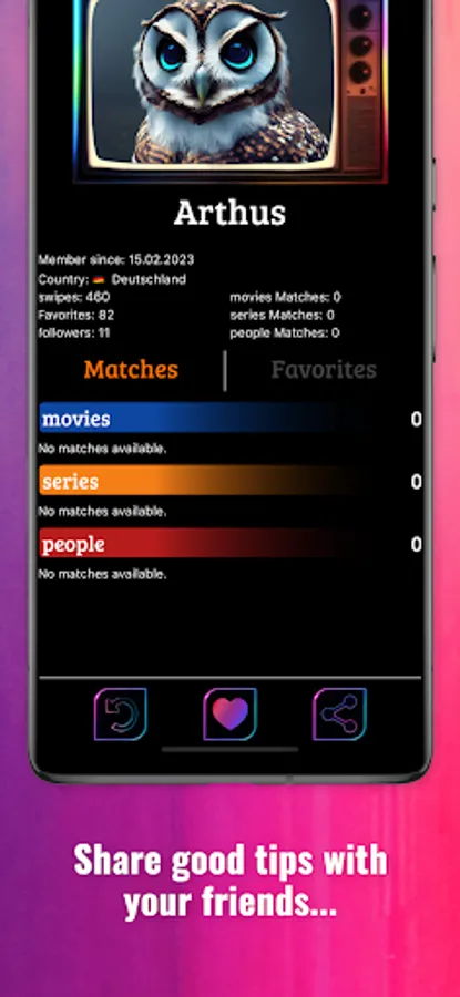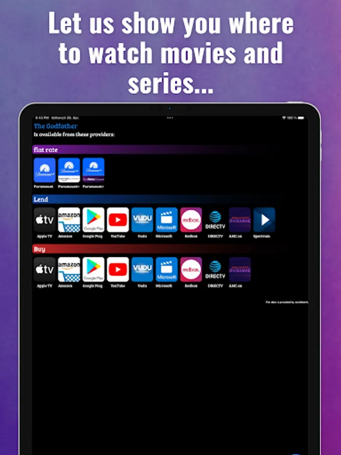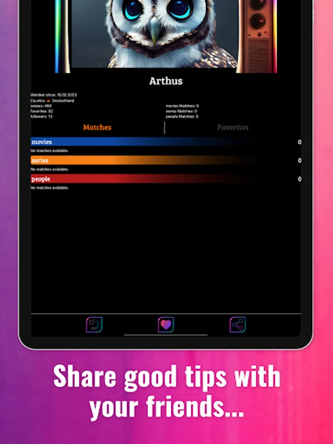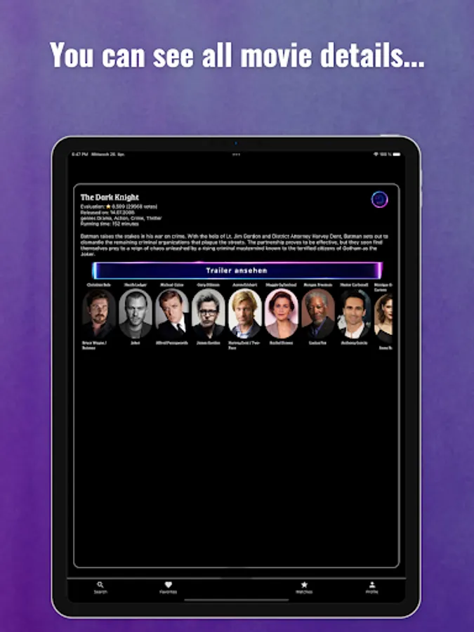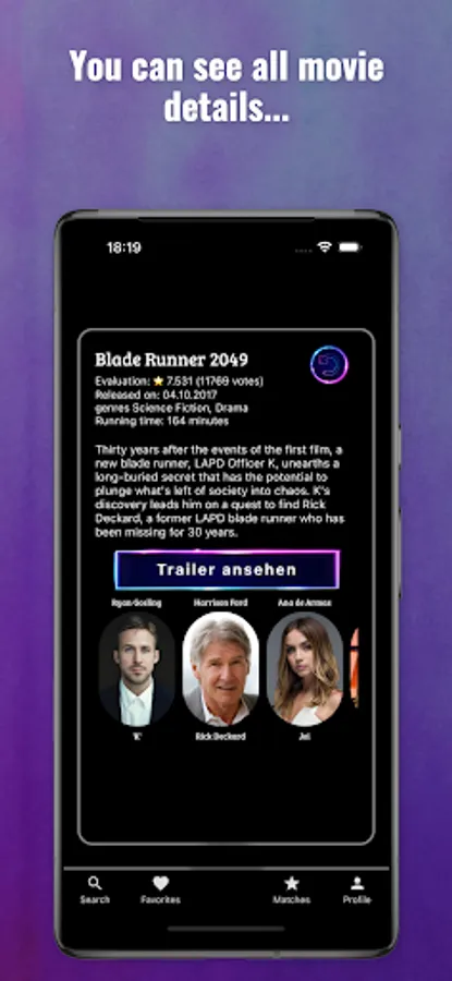 You have access to the largest media library in the world and by swiping left and right, you can classify films, series and actors as worth watching or uninteresting and thus quickly find a match with your friends. A list of films and series that match each other is quickly created.