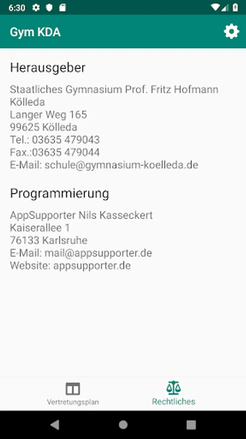 App of the State Gymnasium "Prof. Fritz Hofmann "Kölleda for notification in the event of a change of plan as well as current events.