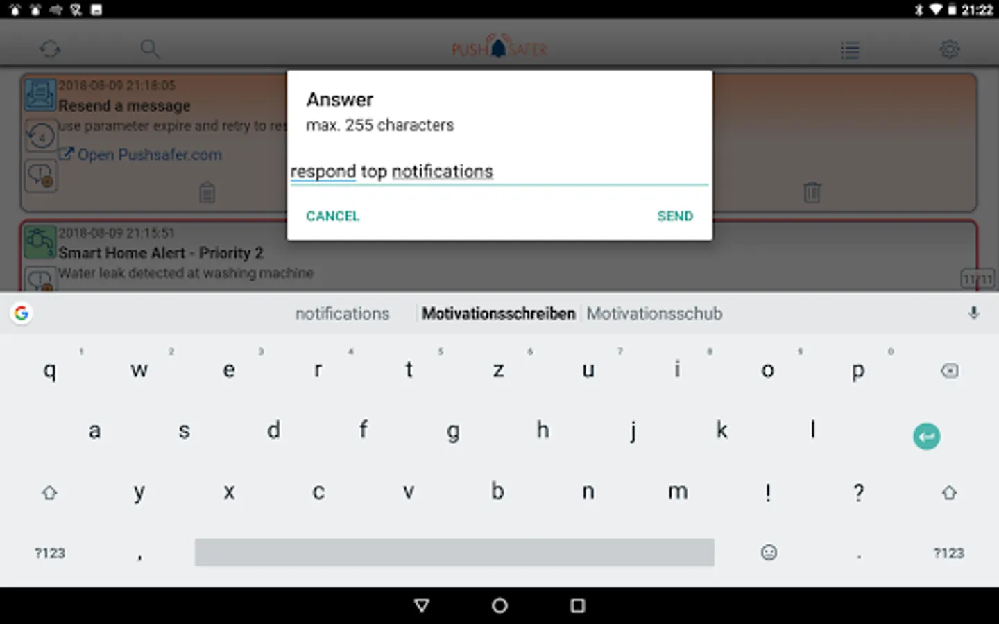 Pushsafer make it easy and safe to get push-notifications in real time on your Android or Windows mobile device, iPhone, iPad and Desktop!
