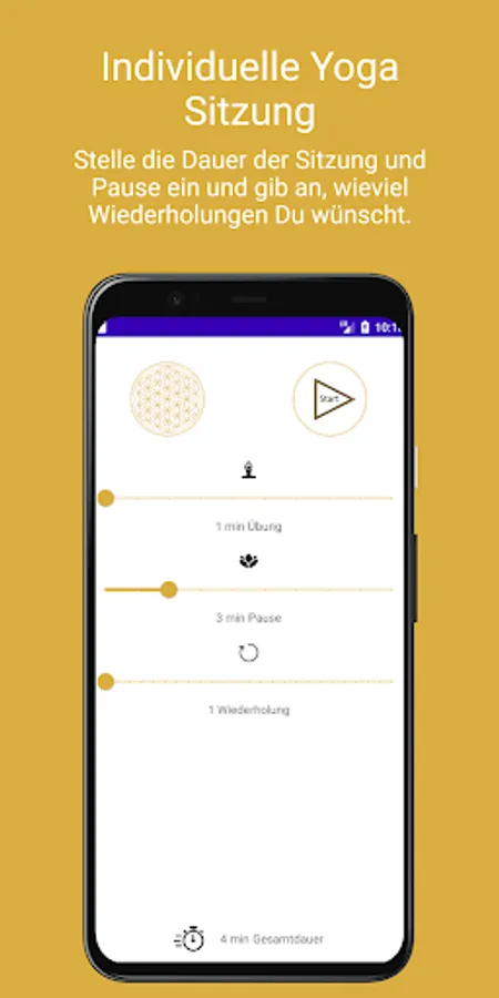 Make your yoga sessions even better! This app reminds you simply and easily at definable time intervals.