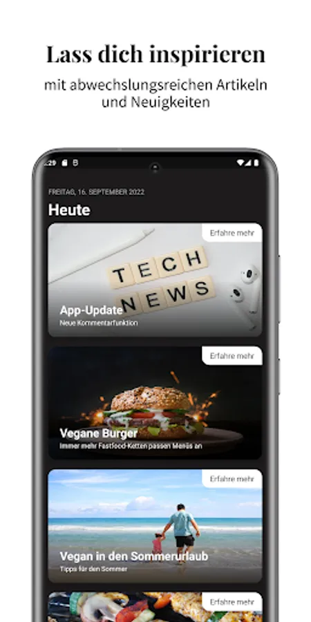 With "Way to Vegan" you get the ideal tool to support you on your way to vegan life.