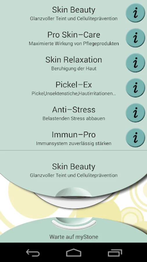The app controls the MY STONE®, an innovative product that uses low-intensity waves to activate biological processes, invigorate the body's forces and support tissue transport.