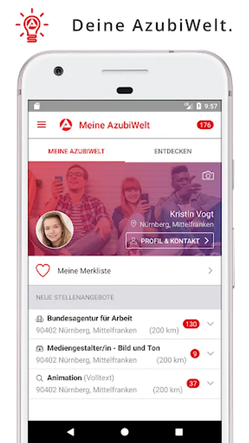 • Your own profile to personalize your AzubiWelt.