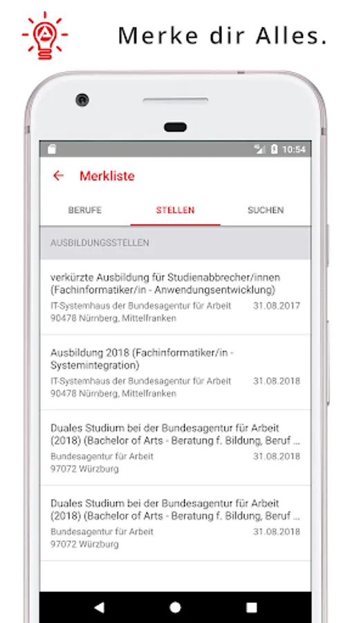 In the AzubiWelt you will find all offers of the Federal Employment Agency for those looking for training combined in one app for your smartphone for the first time.