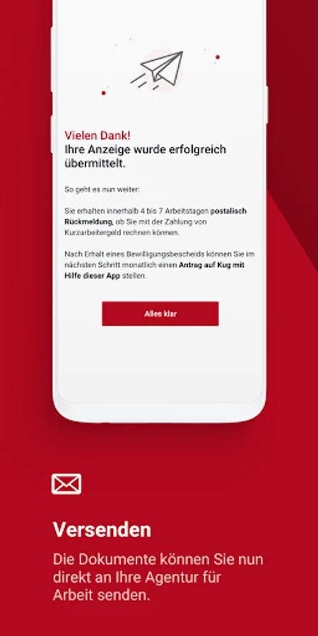 This app supports you as an employer in submitting documents on short-time work allowance to your responsible employment agency. If you use this app, your employment agency can deal with your concerns even faster and more efficiently.