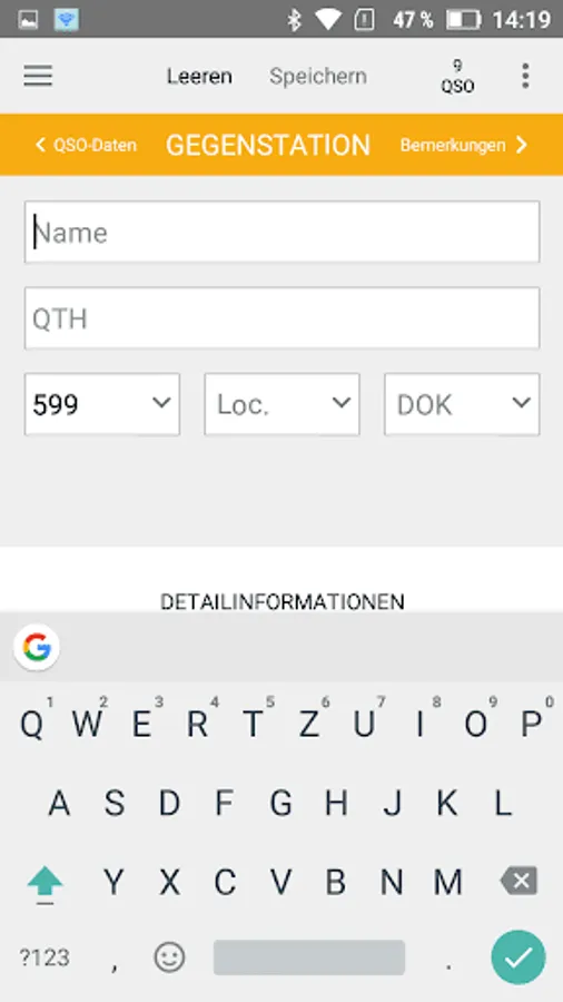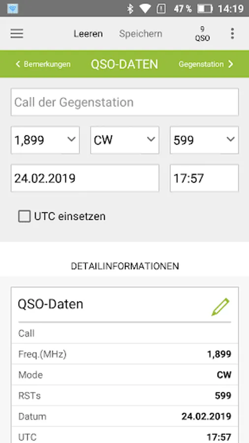 HAM Xpress remembers the essential QSO information, so that after saving in the next QSO already some information is pre-assigned. So you can enter several QSOs in quick succession. In the options menu you will find a menu item to delete these default values as well.