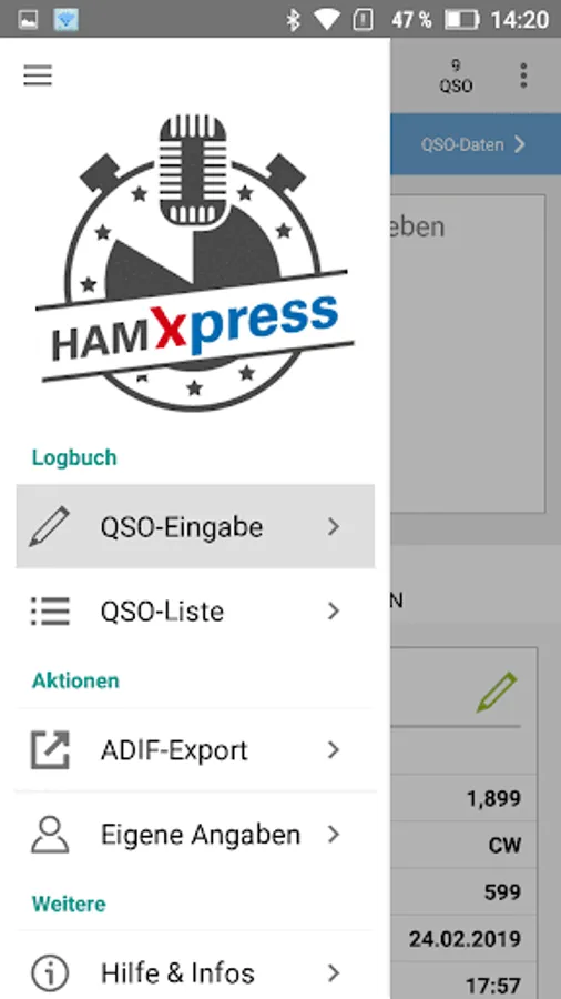 Clear and tidy ... at the same time professional and motivating ... with the possibility of the subsequent processing of their QSOs ... optimized and full-fledged ADIF export ... That's what HAM Xpress offers!
