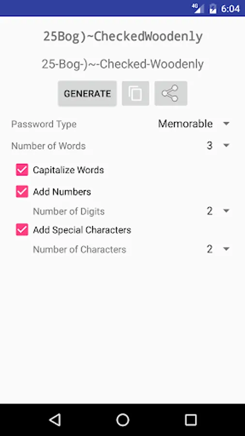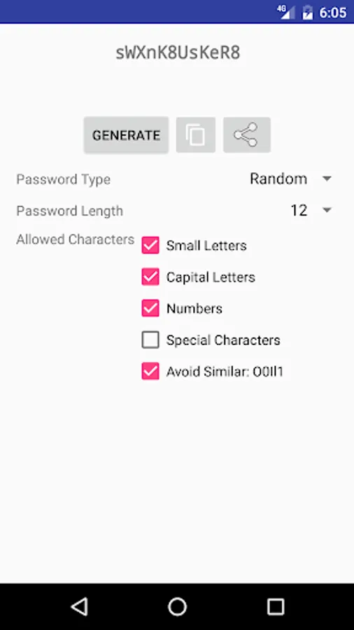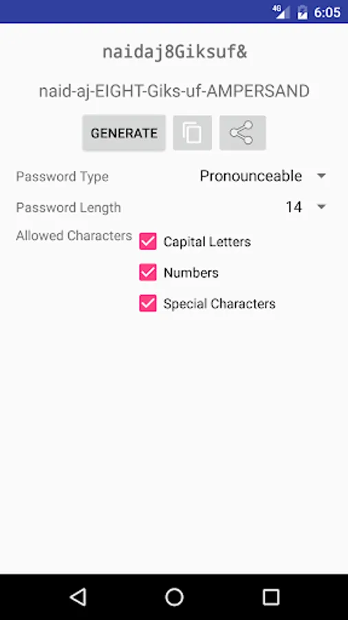 The generated password can be copied and used in other applications by simply clicking the buttons.