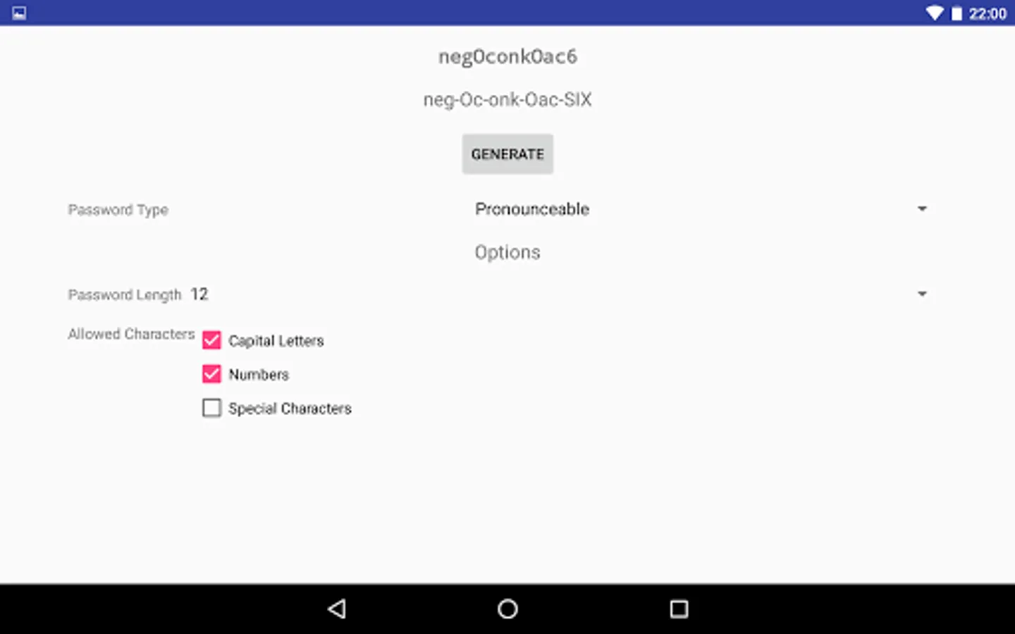 - Pronounceable password using the algorithm specified in FIPS-181,