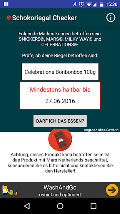 ★ Enter the Best-Before-Date of your chocolate bar in the app