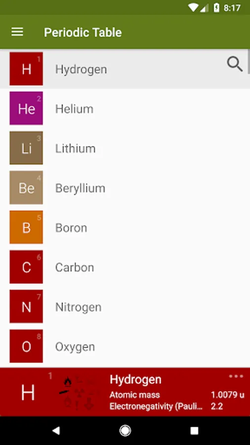 An extensive periodic table of elements with a lot of additional functions. In addition to the countless element properties it displays the danger symbols to every element. The perfect companion for school or professional life.