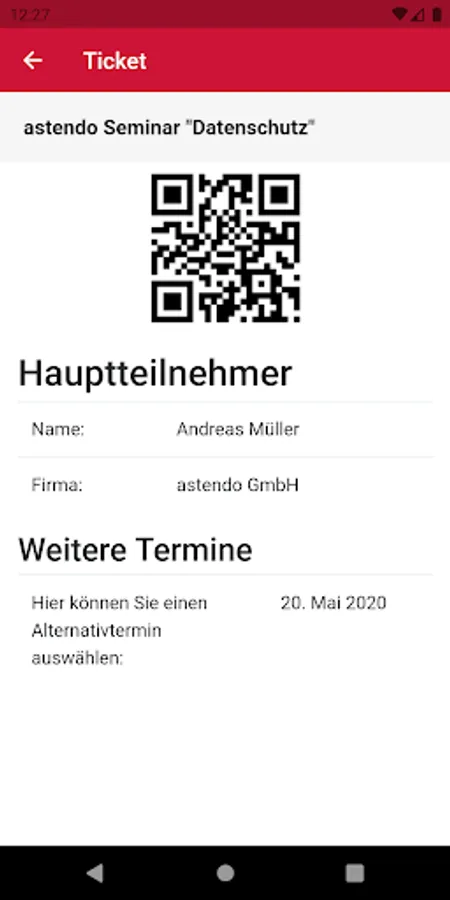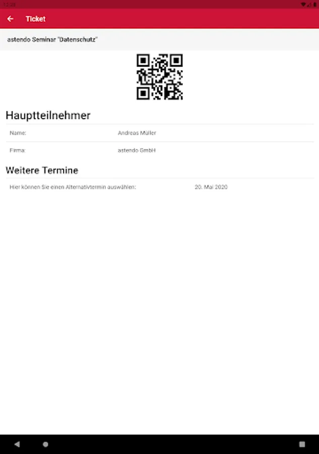 - Ticket with booking number, name and QR code for the participants