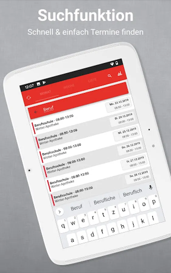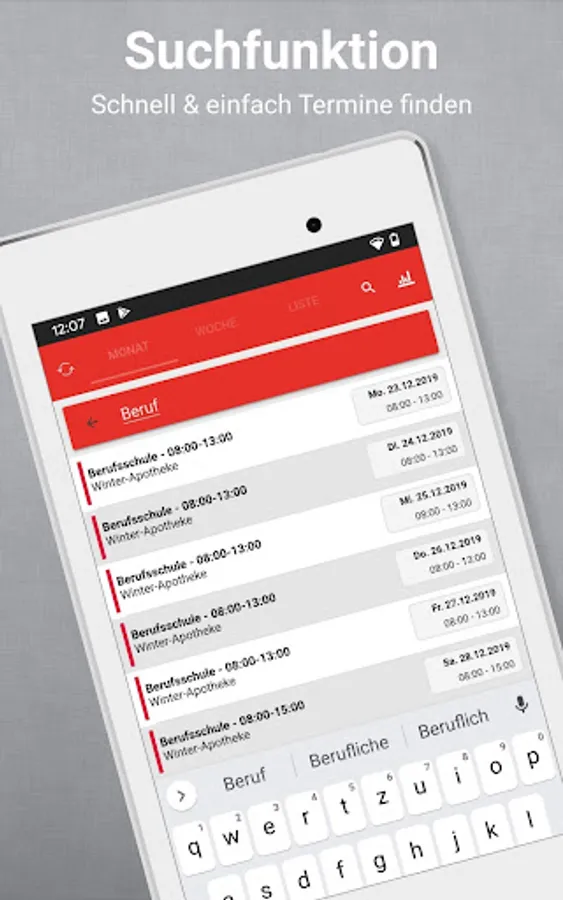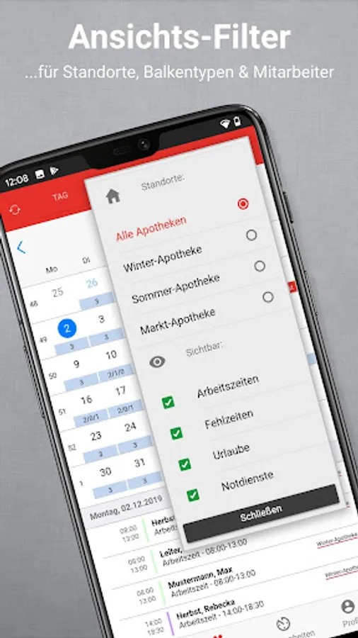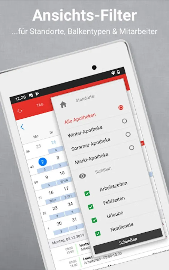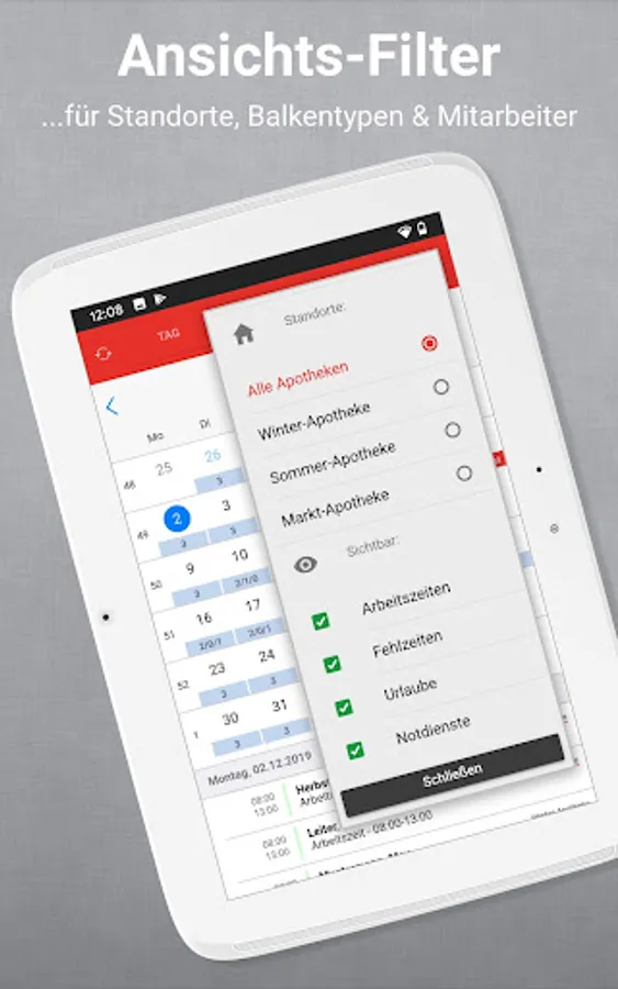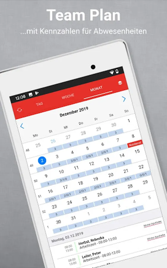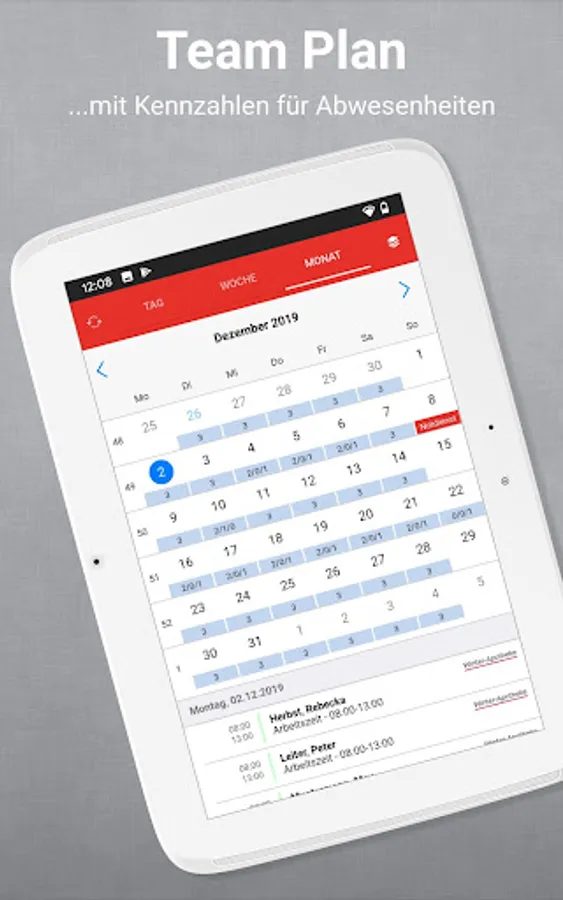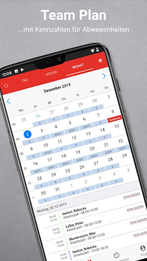 With the "aSuite roster" app, you as an employee have the opportunity to view your deployment plan as well as absences from the aSuite Personal Manager.