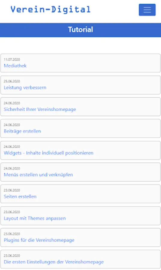 The app for all members of the Verein-info.de portal. Here you will find information and access to tutorials to help you create a club website. In the member area you can manage your data and communicate with other members.