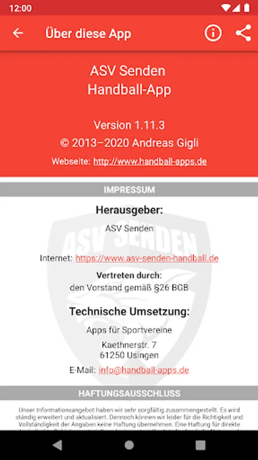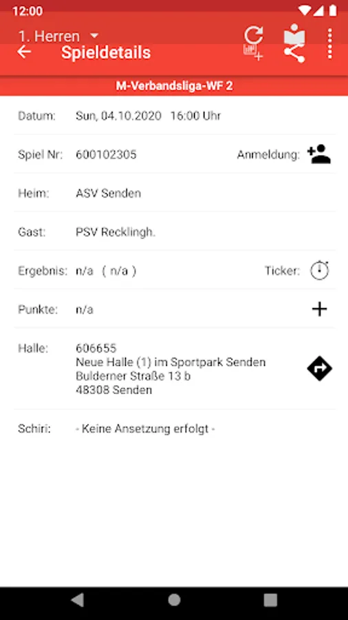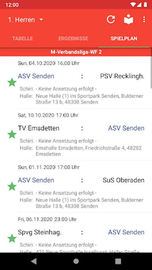 - Home match calendar to display the next home matches of all ASV Senden teams