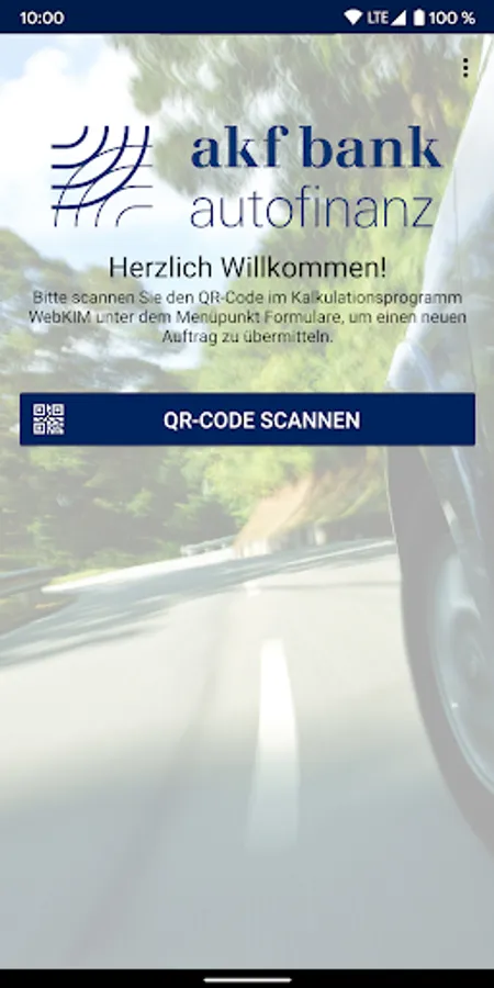 2. Scan directly with the akf ident autofinanz app the displayed QR code in the calculation program WebKIM under the menu item "Forms".