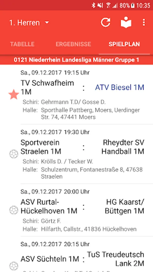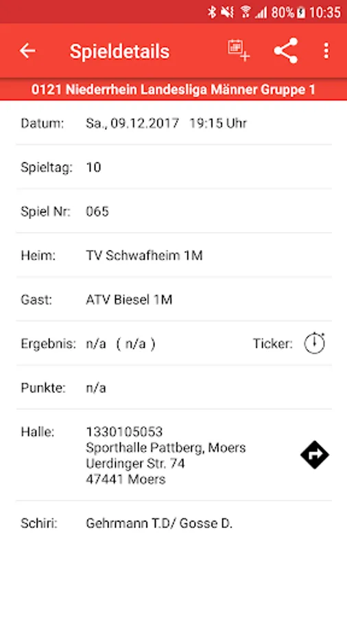 - Details of a game (for example, date, time, half-time result, referee heading, Hall address, etc.)