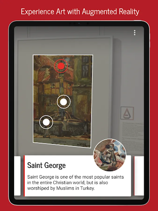 Interesting details in the paintings are impressively staged with corresponding 3D objects and photos. It is very easy to use and works on, both tablet and smartphone. Simply aim the camera of the device at a painting and immediately enter the digital dimension of culture.