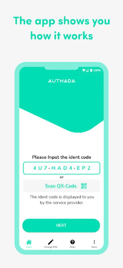 Once you have installed the AUTHADA app, you can use it to identify yourself to your service provider. To do this, open the website of your service provider and enter the displayed ident code into the AUTHADA app or scan the QR code with the AUTHADA app. Then follow the instructions in the app. You will need to hold your ID card up to the smartphone during the identification process and enter the ID card PIN into the app when requested. To complete the process, enter the TAN generated in the app on the service provider's website.