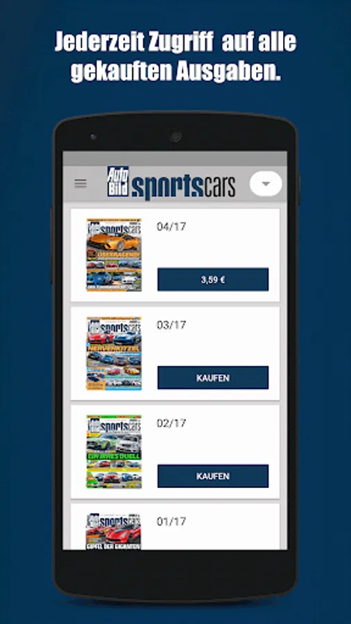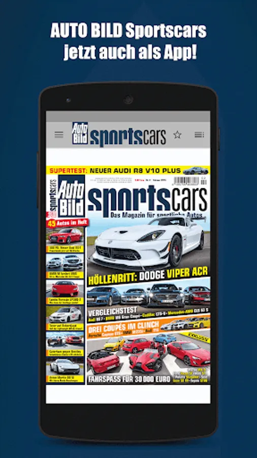 With this app you can buy the latest edition of AUTO BILD sportscars for 3.59 euros. retained all editions purchased in the app, so you can browse at a later date at any time in older editions.