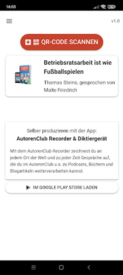 Additionally, audio content produced by users of the “AutorenClub Recorder App” (also available on Google Play) is available in the “Hörbuch & Podcast” app. The dictation app makes it possible to produce audio content, have it checked free of charge in the Authors' Club feedback environment and offer it in audio books and podcasts for listening.
