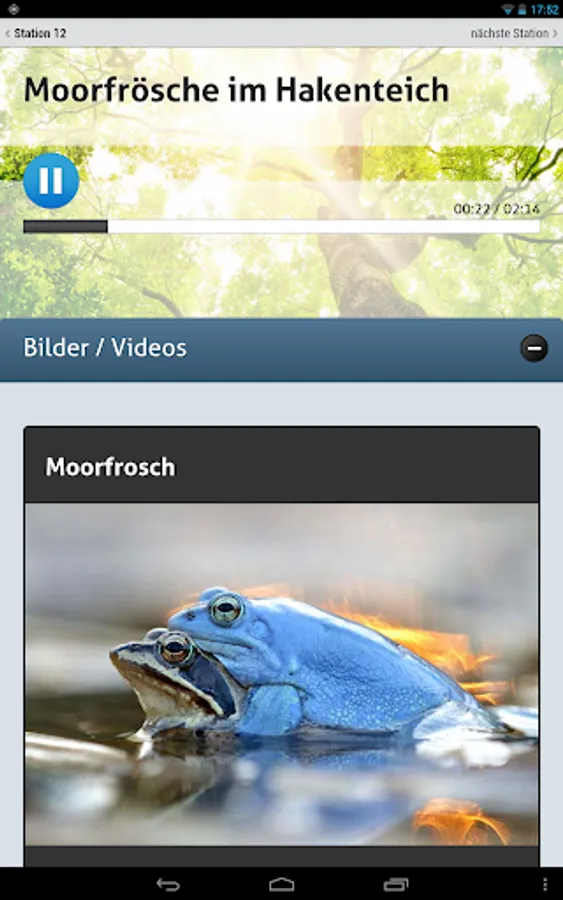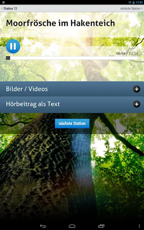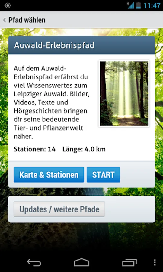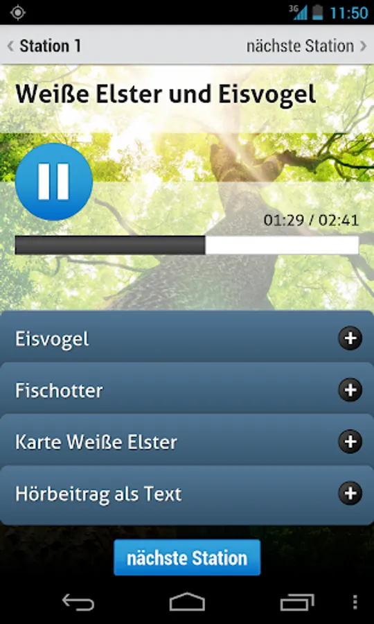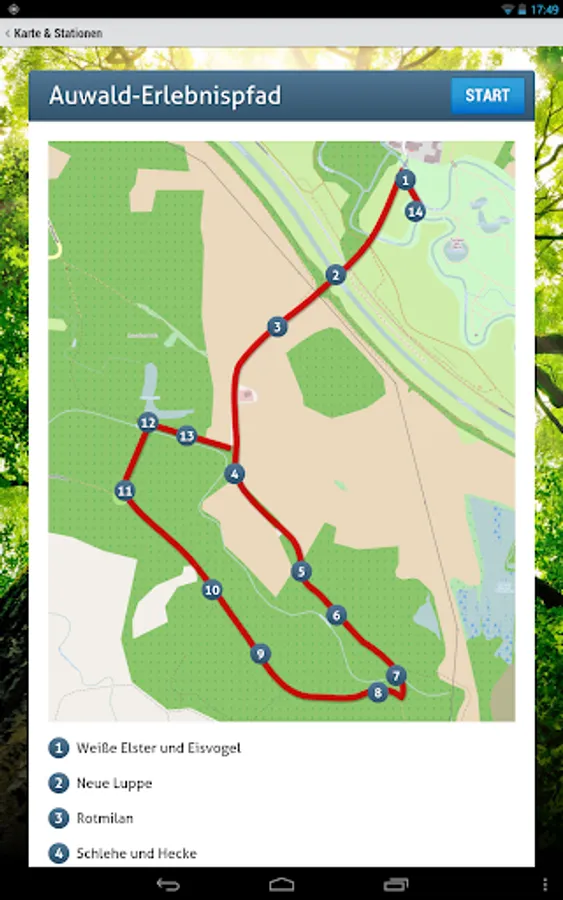 Discover this natural jewel with the riparian forest adventure trail: About GPS You are guided to 13 stations. There are waiting for you exciting audio stories, photos, videos and quizzes for riparian forest and its inhabitants. Learn for example more from the life of dazzling kingfisher. Hear the cries of bubbling bog frog. Or enjoy the view of the landscape.