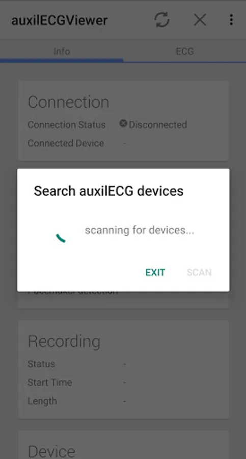 For the graphical online display of the ECG leads, the manufacturer provides an optional, free Android Application "auxilECG Viewer".