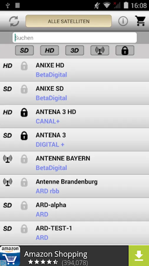 Updated daily you will get an overview of all available TV programs and radio stations via satellite.